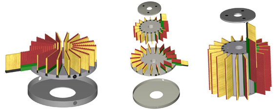 Cylindryczne i kątowe szczotki obrotowe mogą być łączone ze sobą dla indywidualnego profilu lub rodziny profili. Szczotki są odporne na odkształcenia zarówno wysokości jak i średnicy. Pojedyncza głowica może być stosowane do szlifowania podobnych profili.