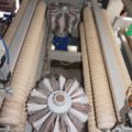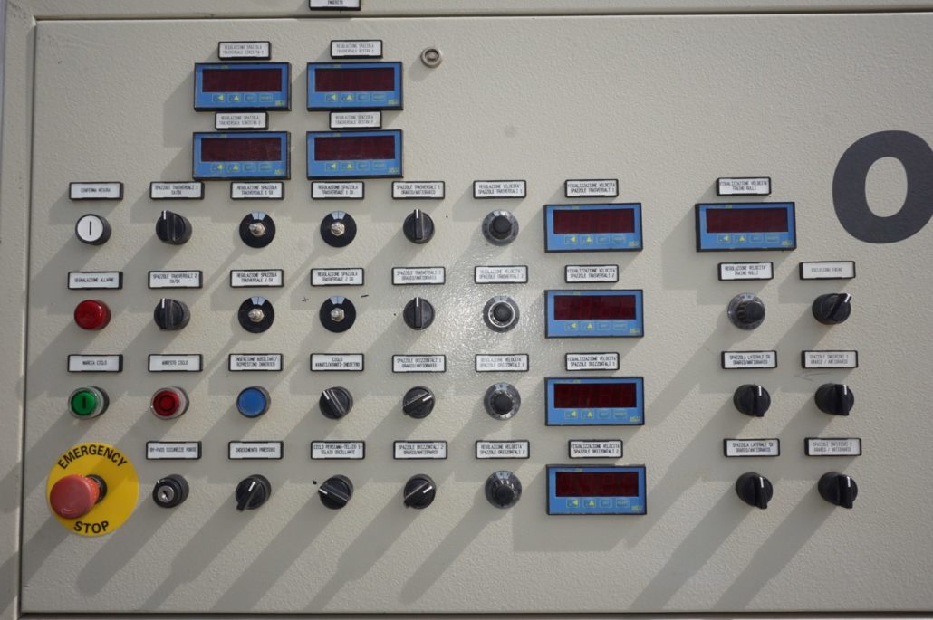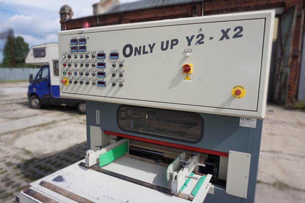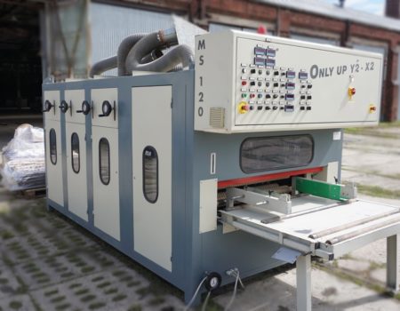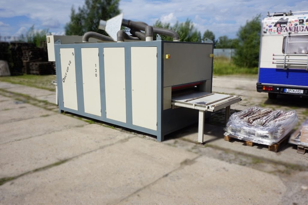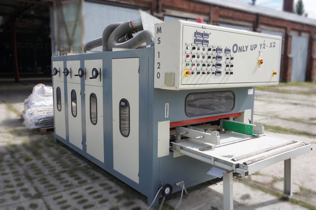 Breitenverstellbare Horizontalbürstaggregate zum Schleifen von unten + Schleifaggregat zum Schleifen von oben. |