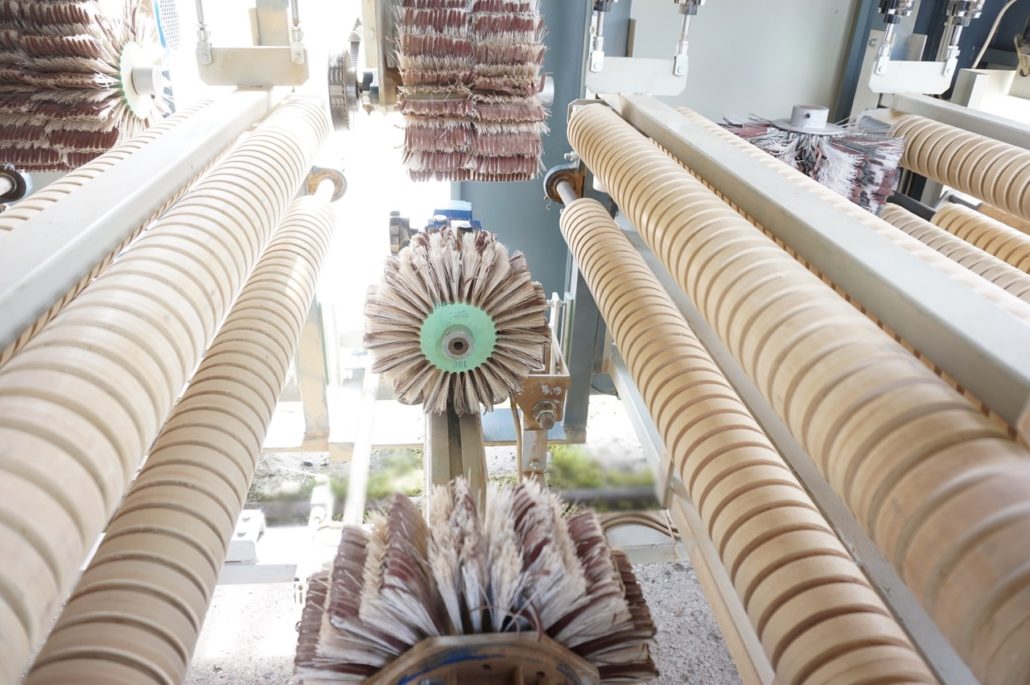 Horizontalbürstaggregat zum Schleifen von oben. |
