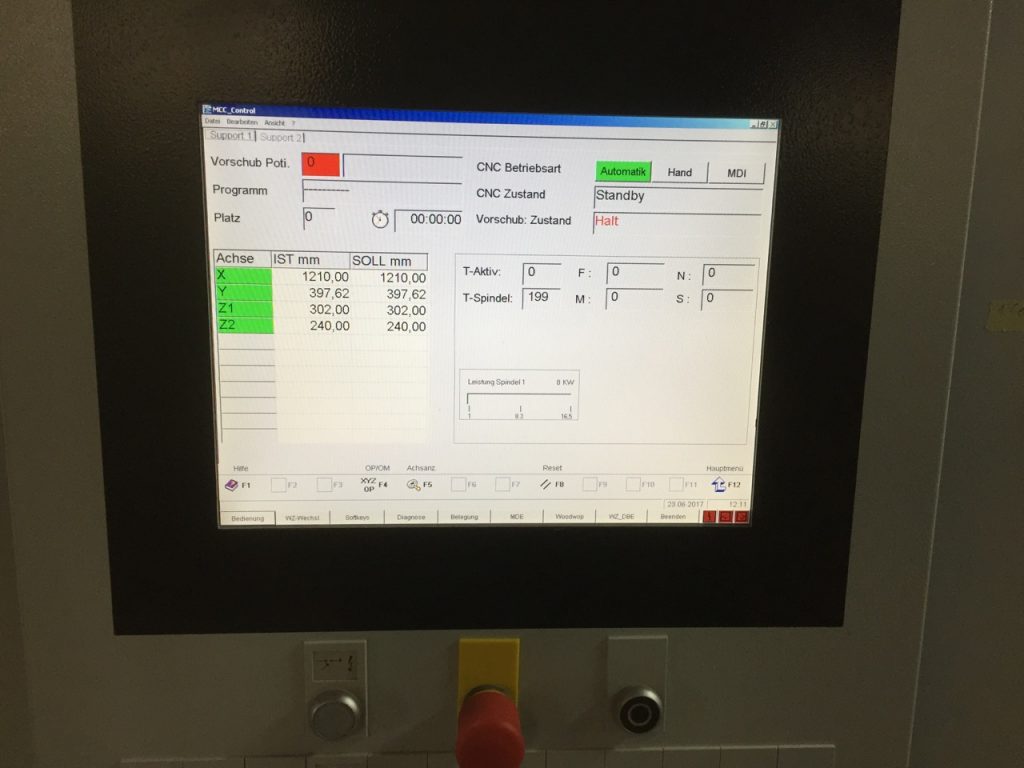 Max. 38 mm Rechts/links – 7500 1/min 1,5 kW 32 mm bei 9 Bohrspindeln in Y -Richtung |