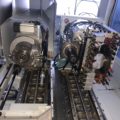 Aggregatträger links ist ausgelegt für zwei separate Z-Achsen (Z1, Z2). Ermöglich den schnellen abwechselnden Einsatz von Bohrkopf und Hauptspindel. |