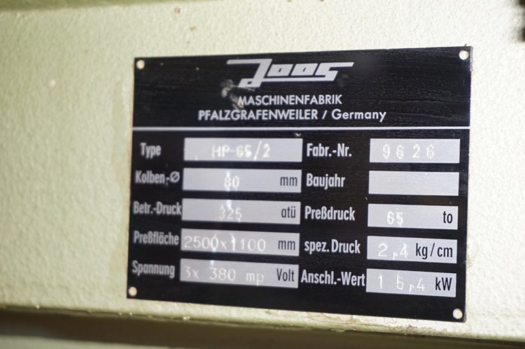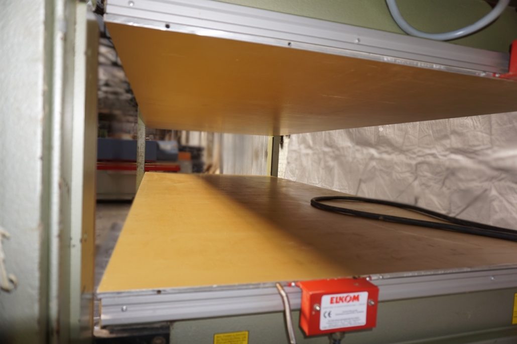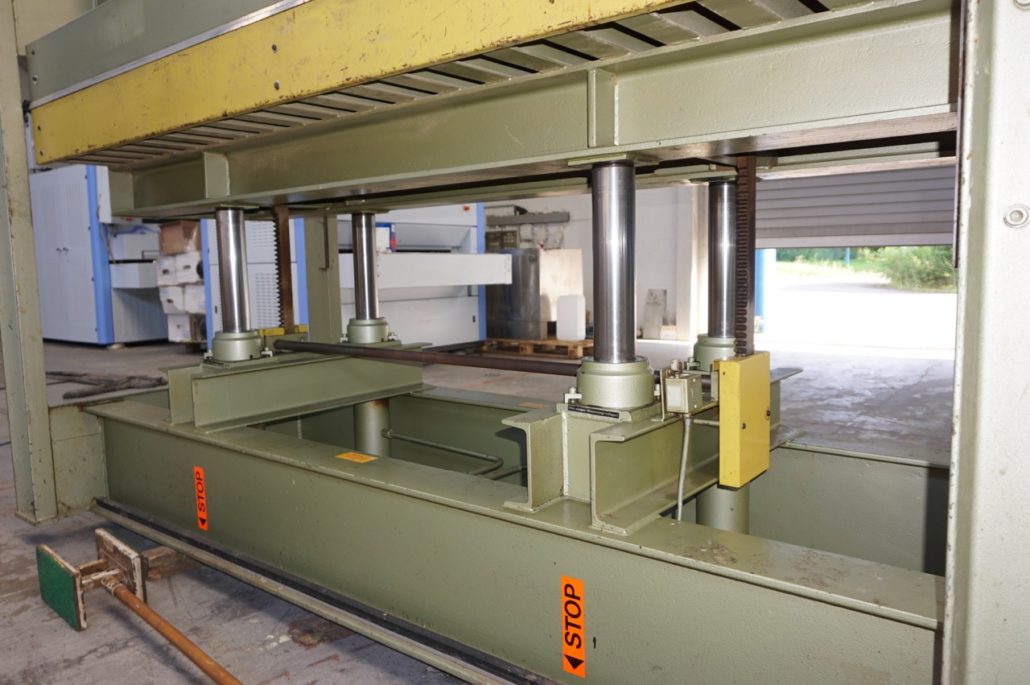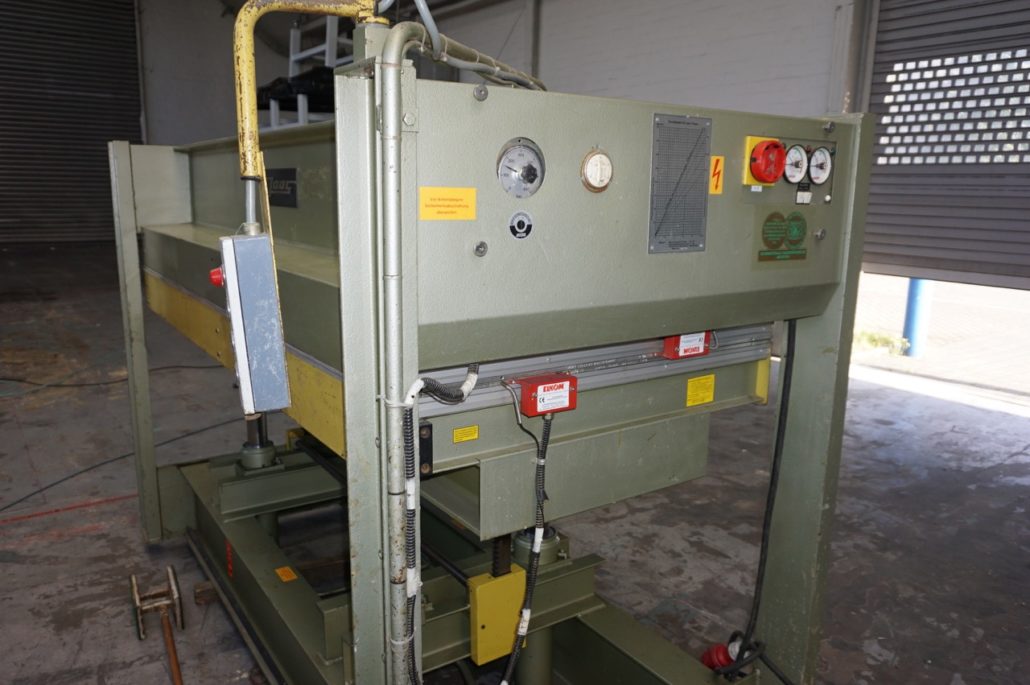 Furnierpresse hydraulisch mit Elektroheizplatten mit GOLDELOXAL-Oberflaechen, gereinigt, funktionsgeprüft, Probelauf