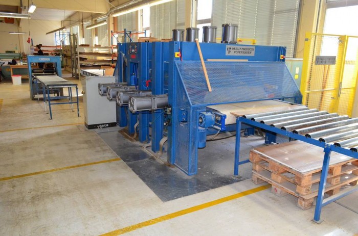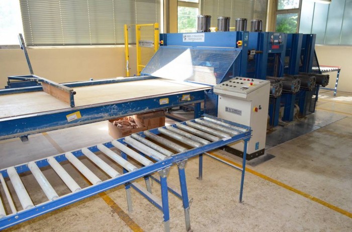 HF frequency laminating press for solid timer panels OBEL Pedersen