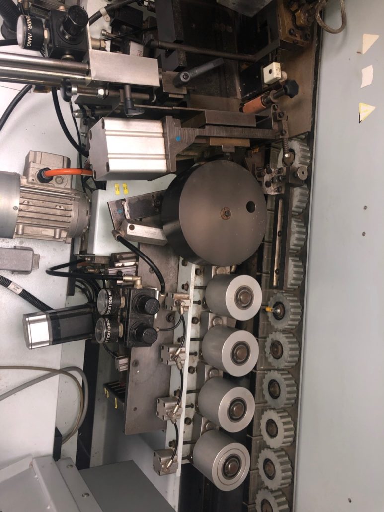 Automatisches Kantenmagazin für Rollenware und Fixlängen,einschl. Rollenteller Durchm. 800 mm. |