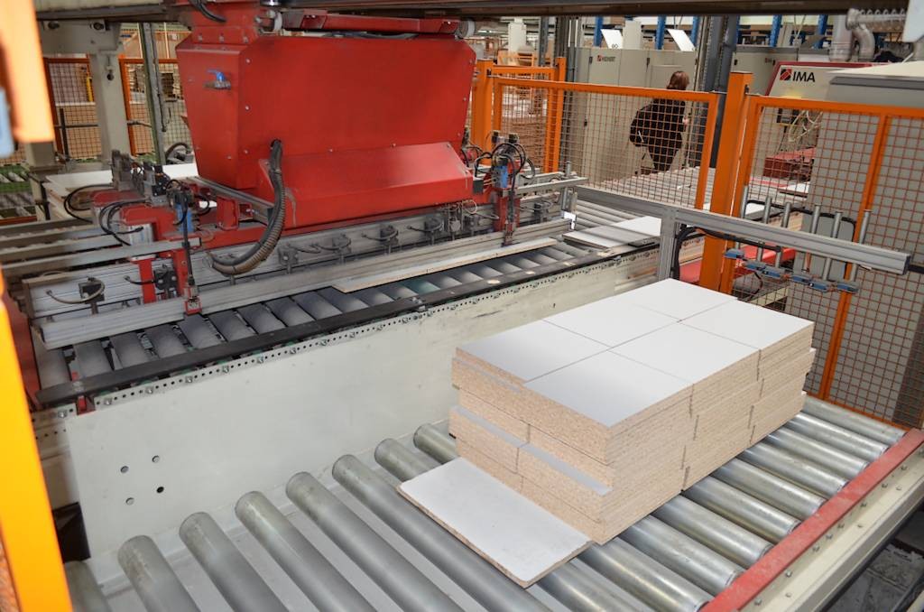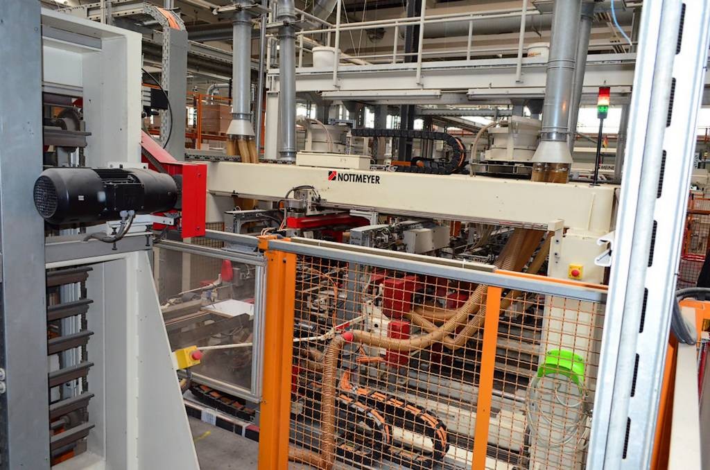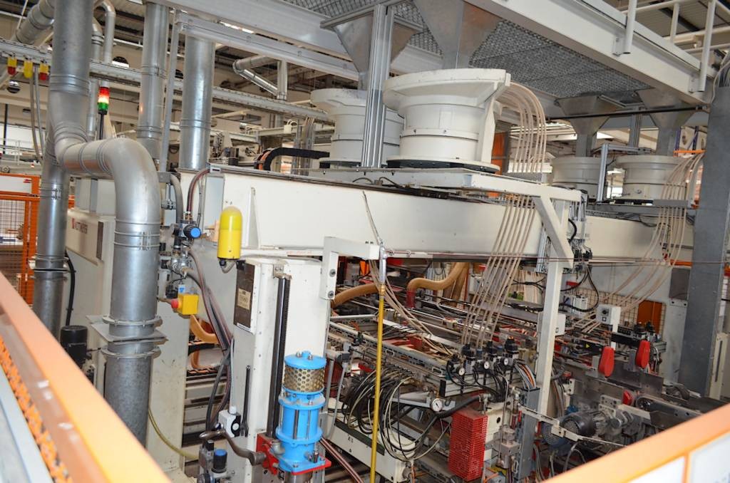 Komplette Produktionslinie für Quer und Längskantenbearbeitung bestehend aus: