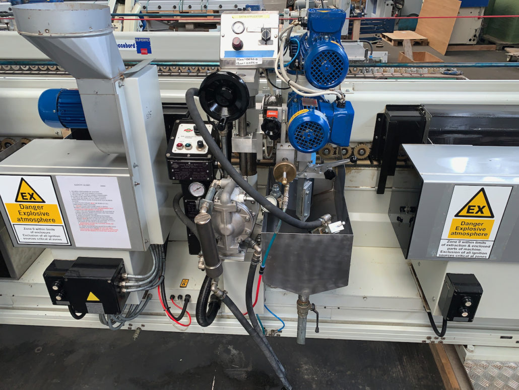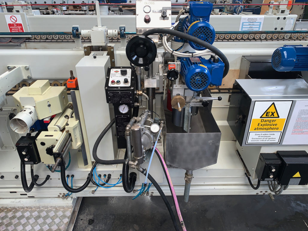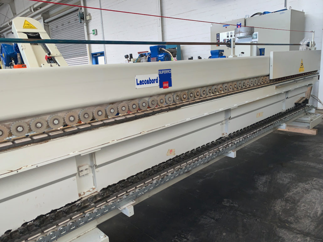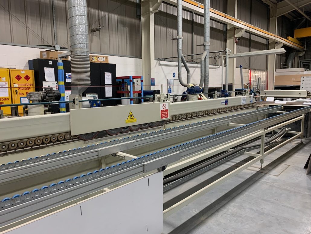 Die Maschine ist speziell dafür ausgelegt, alle Prozesse, die normalerweise auf Oberflächen ausgeführt werden, an Kanten auszuführen.