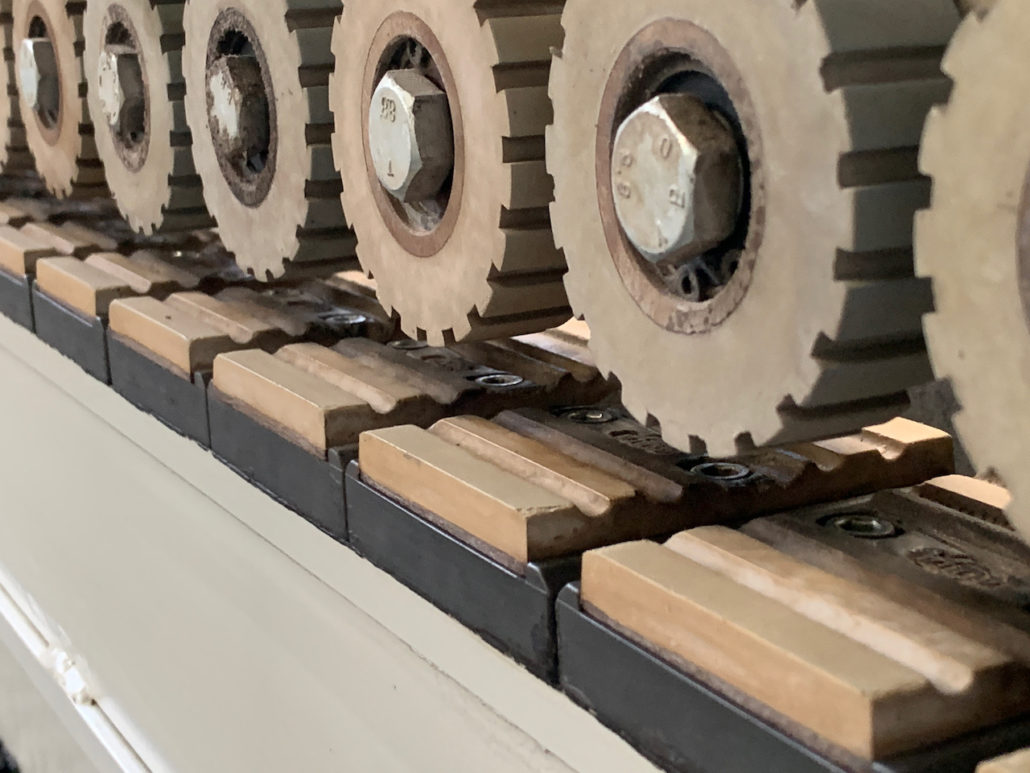 mit 2 Beschichtungsmessern aus Nylon. Lackauftrag 5 – 70 g / m2, Motor 0,37 kW |