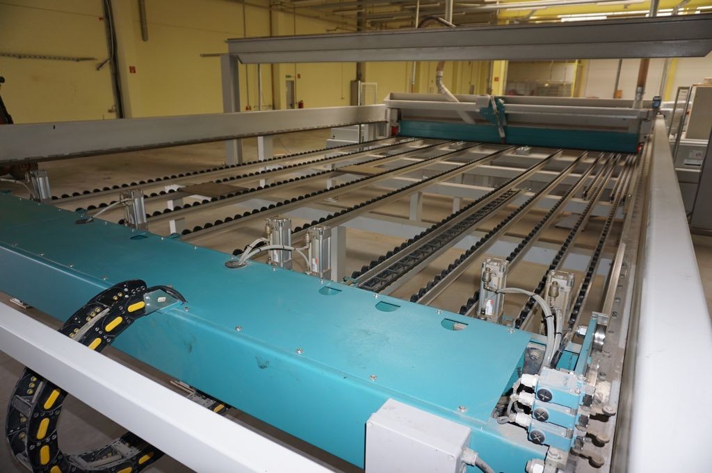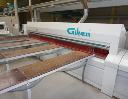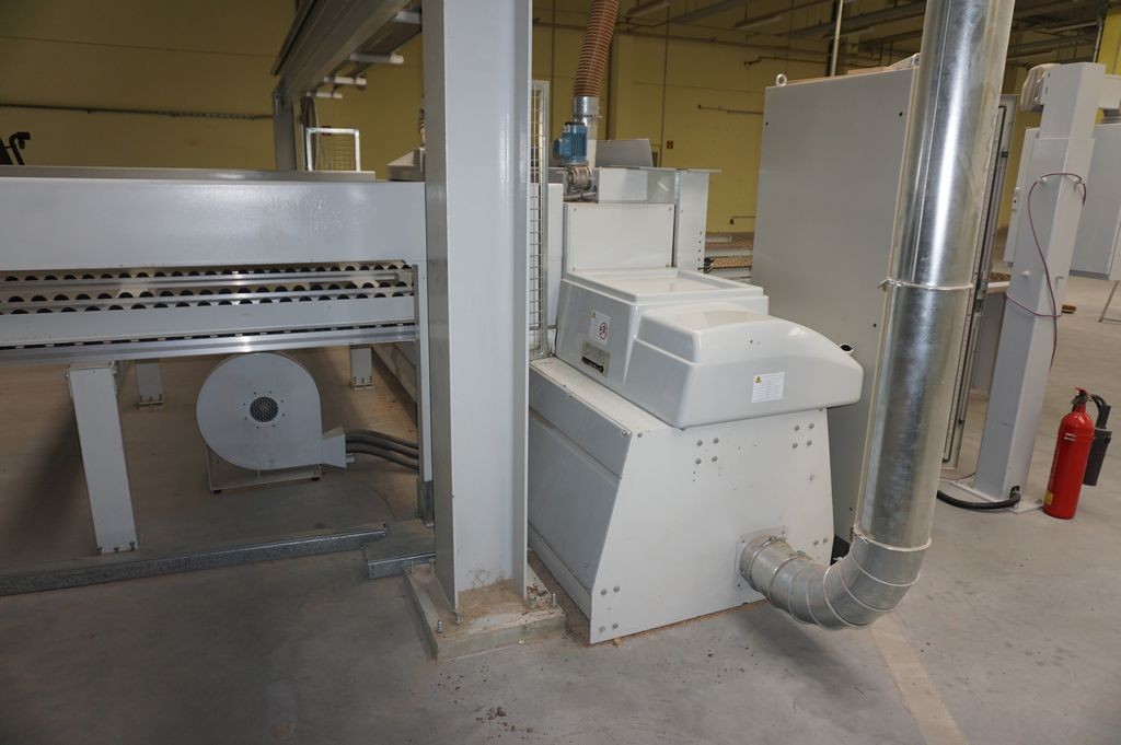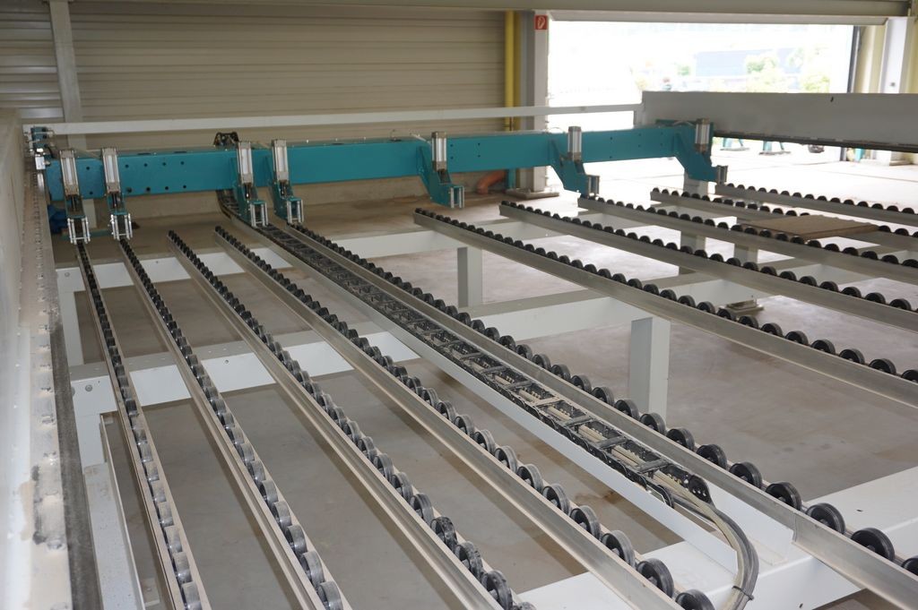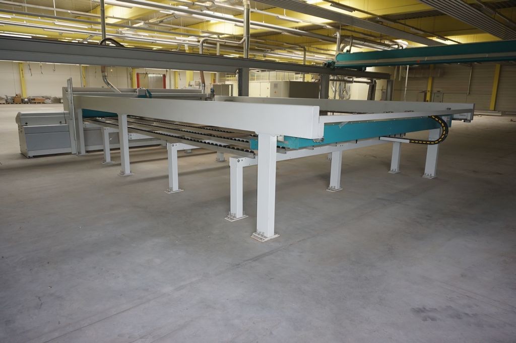mit einer heb- und senkbaren, gummierten Rollen auf der Schieberseite und Bedienerseite, ist automatisch in den Arbeitsablauf der Maschine integriert und drückt das aufzuteilende Plattenmaterial gegen den Winkelanschlag. Dadurch ist gewährleistet, dass bis zum letzten Schnitt winkelgenau ausgerichtet werden kann. |