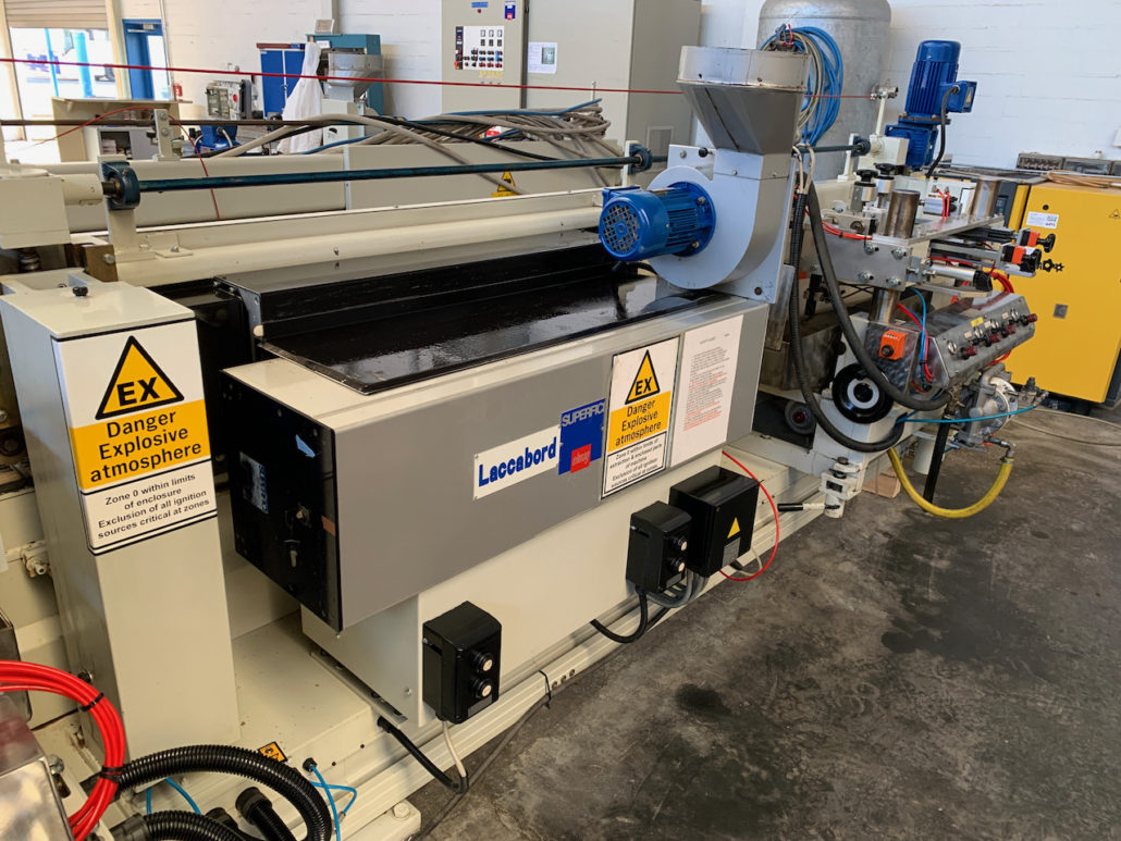 – Belt paint applying unit mod. NST with 2 coating knifes in nylon. Lacquer applied 5 – 70 g/m2, Motor 0,37 kW