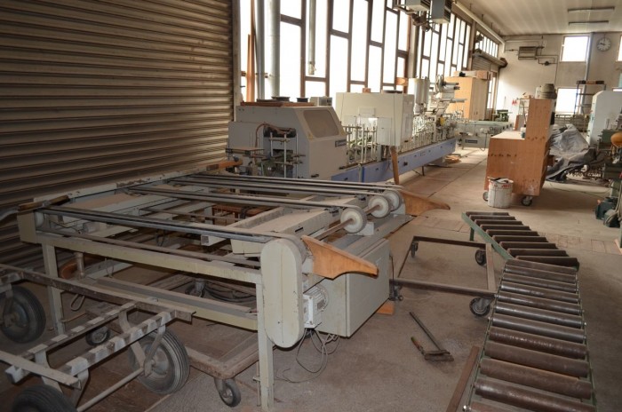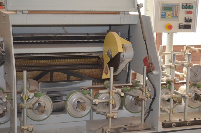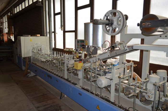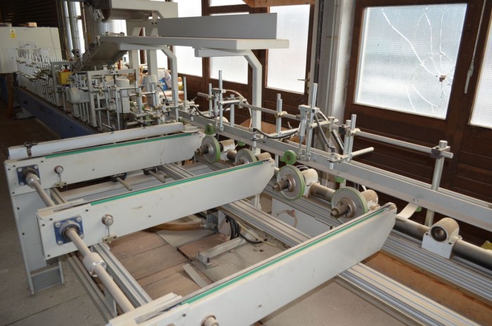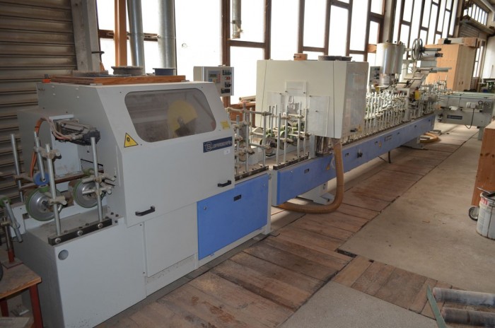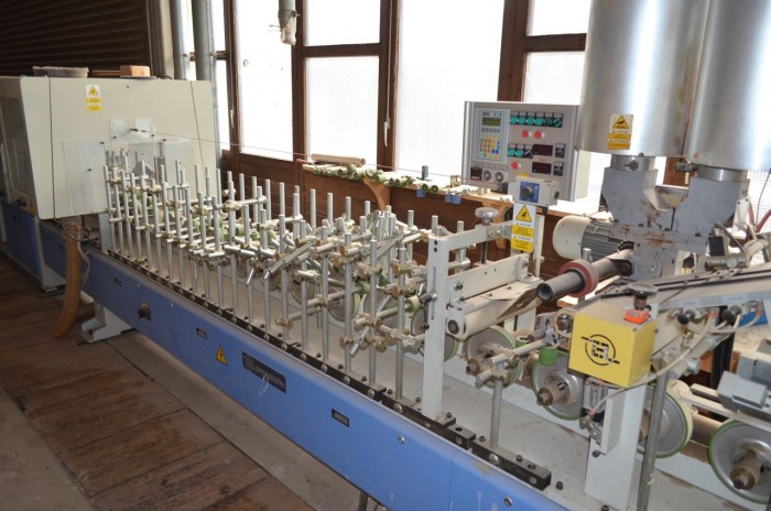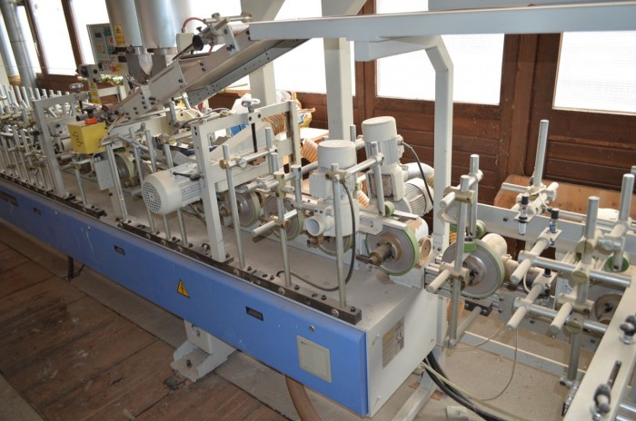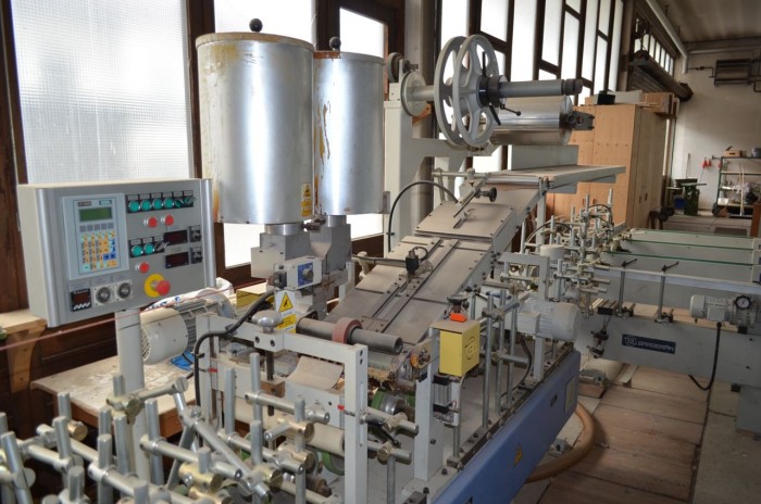 | Für den kontinuierlichen Auftrag von Furnierstreifen, Dekorfolie oder änliche Materialien auf Profilen aus Massivholz, Sperrholz, Aluminium usw. mit der Verwendung von EVA Schmelzklebern. |