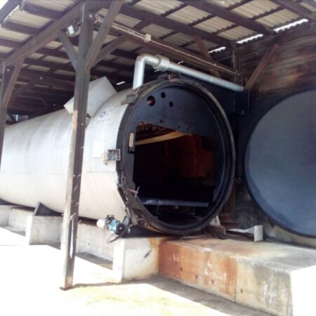 • Wood steaming chamber BES Bollmann, Type HD MW 340-420/530-800 with Boiler LOOS Typ U-ND 1250×1